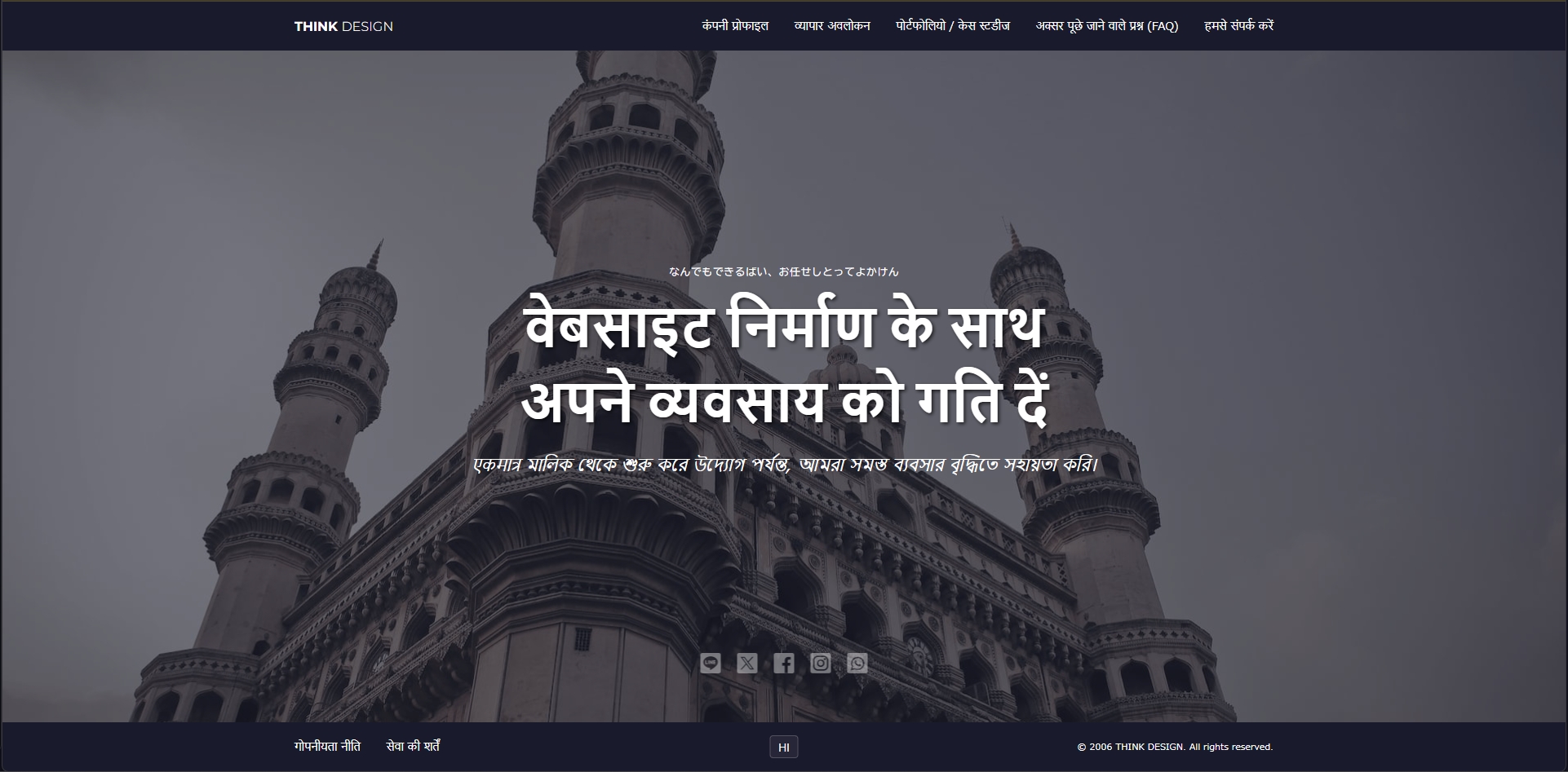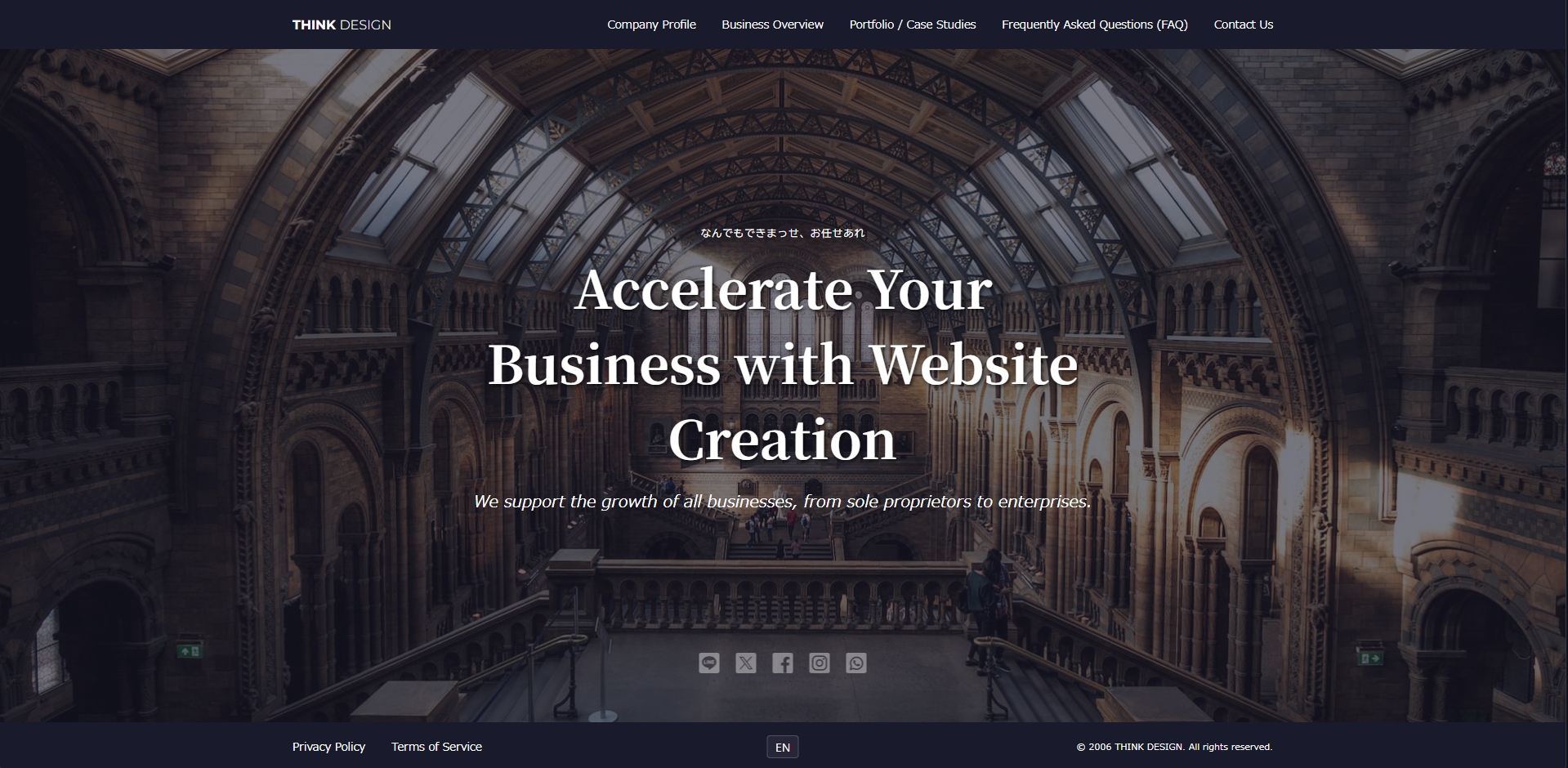 This site was the original corporate website created at the founding of THINK DESIGN—a milestone project that pioneered our technical and creative direction. Built as a Single Page Application (SPA), it featured seamless navigation and dynamic content switching, with full support for four languages (Japanese, English, Hindeese, Thai) via JSON-based management. This approach enabled a global-ready, highly interactive user experience far beyond traditional static sites.